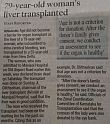 Age did not become a barrier for organ transplant as the liver of a 79-year-old woman, who succumbed to intra-cerebral bleeding, was transplanted to a 55-year-old man from New Delhi. The woman, who was admitted to Manipal Hospital on Old Airport Road earlier this week, was declared brain dead on Saturday. The transplant was done on Sunday. A. Olithselvan, chairman of the liver transplant division at Manipal Hospital, said that the liver was in good condition.